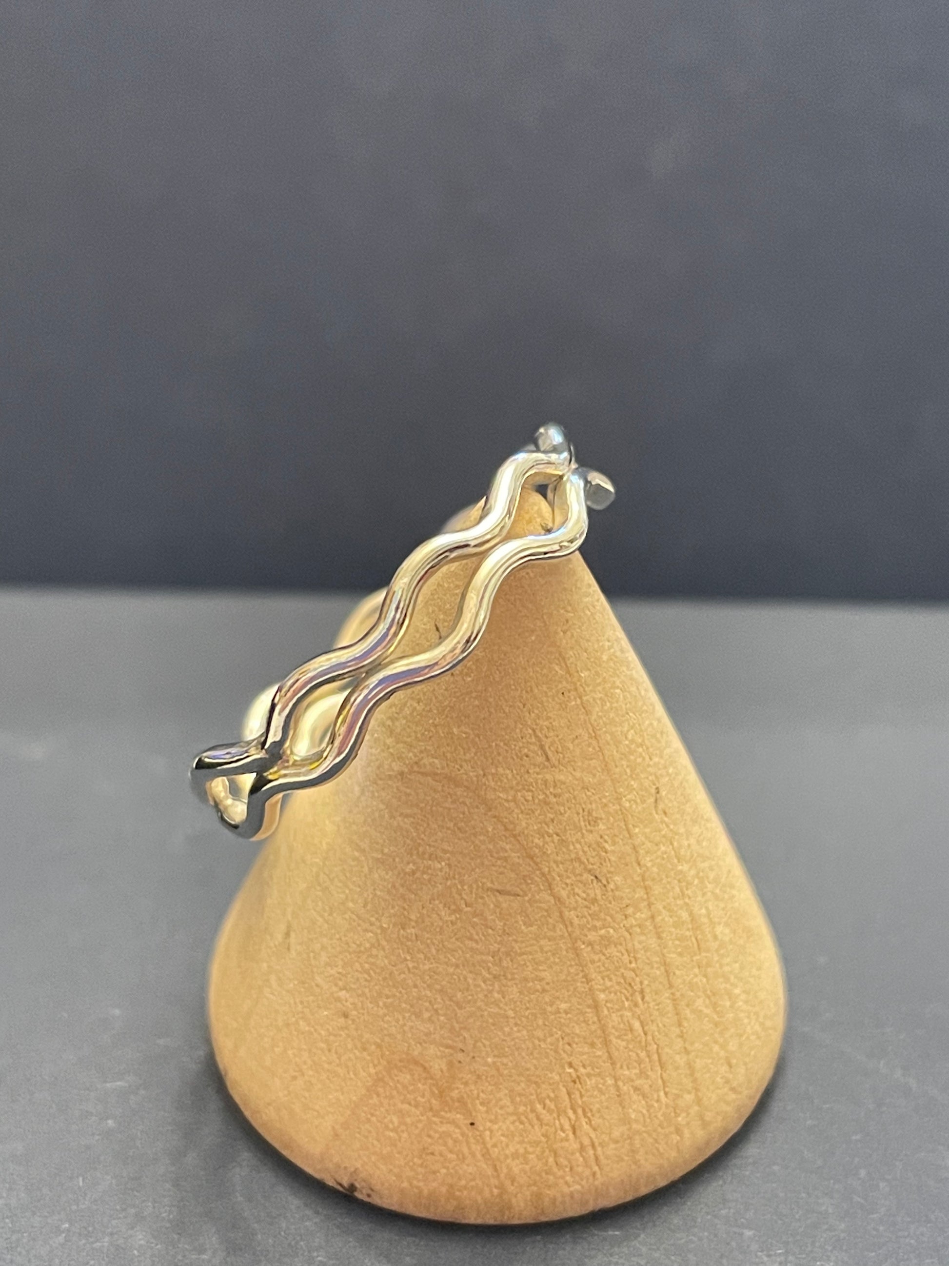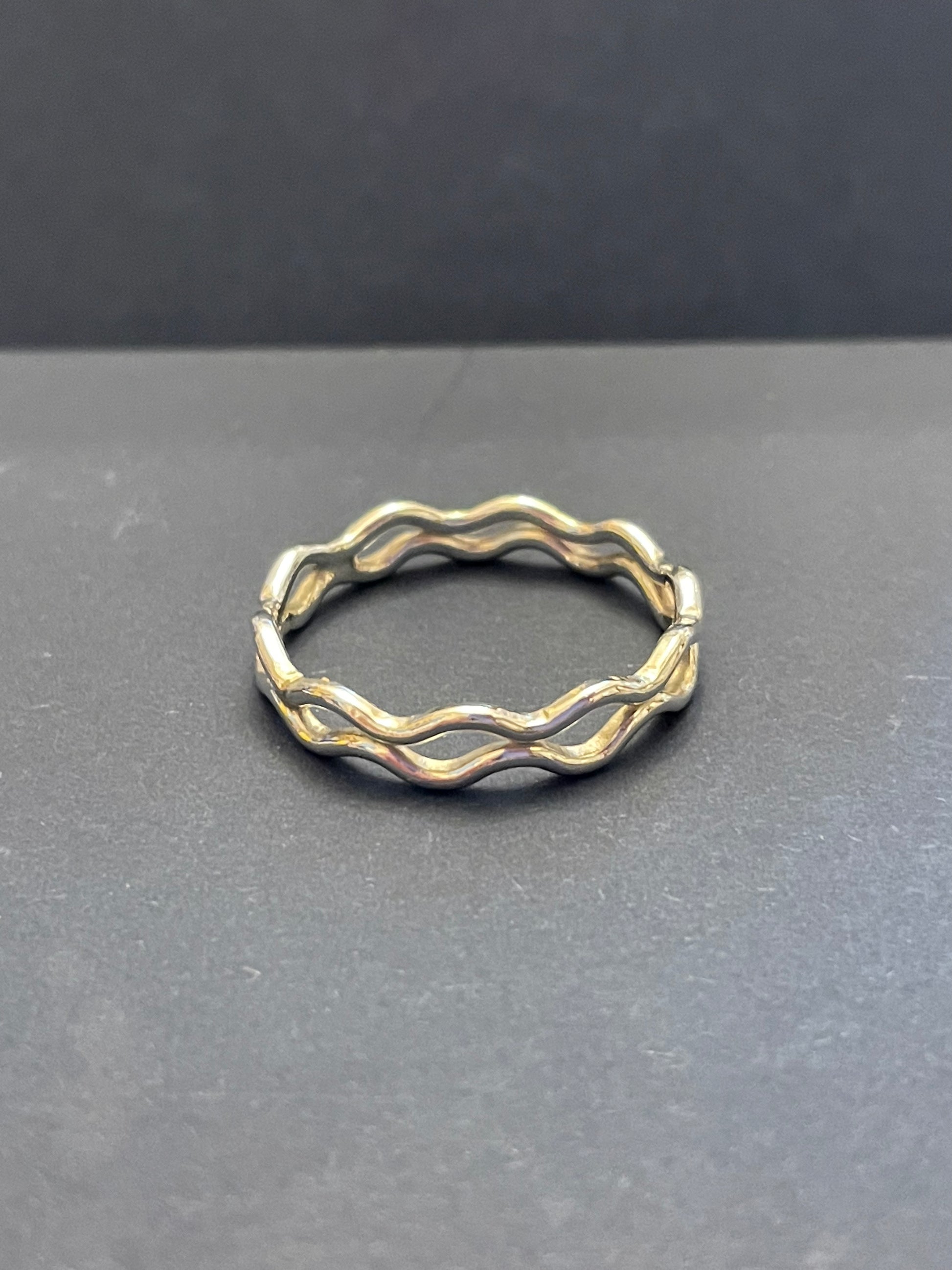 Handmade in recycled Sterling Silver this double wave ring is a fantastic ring to be worn alone or stacked with others.