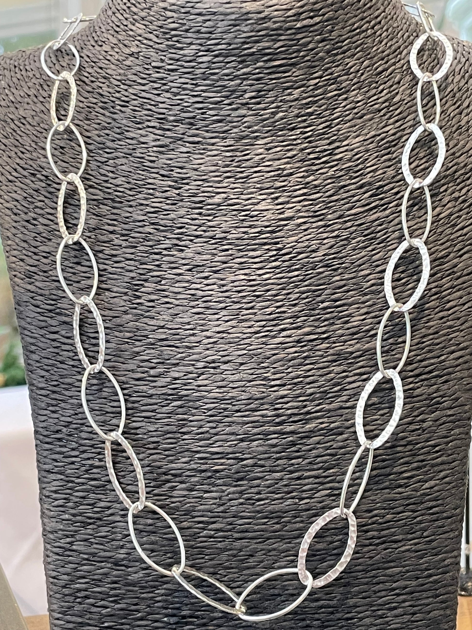 Made from oval links, alternated hammered & plain links to give it an eye catching finish.