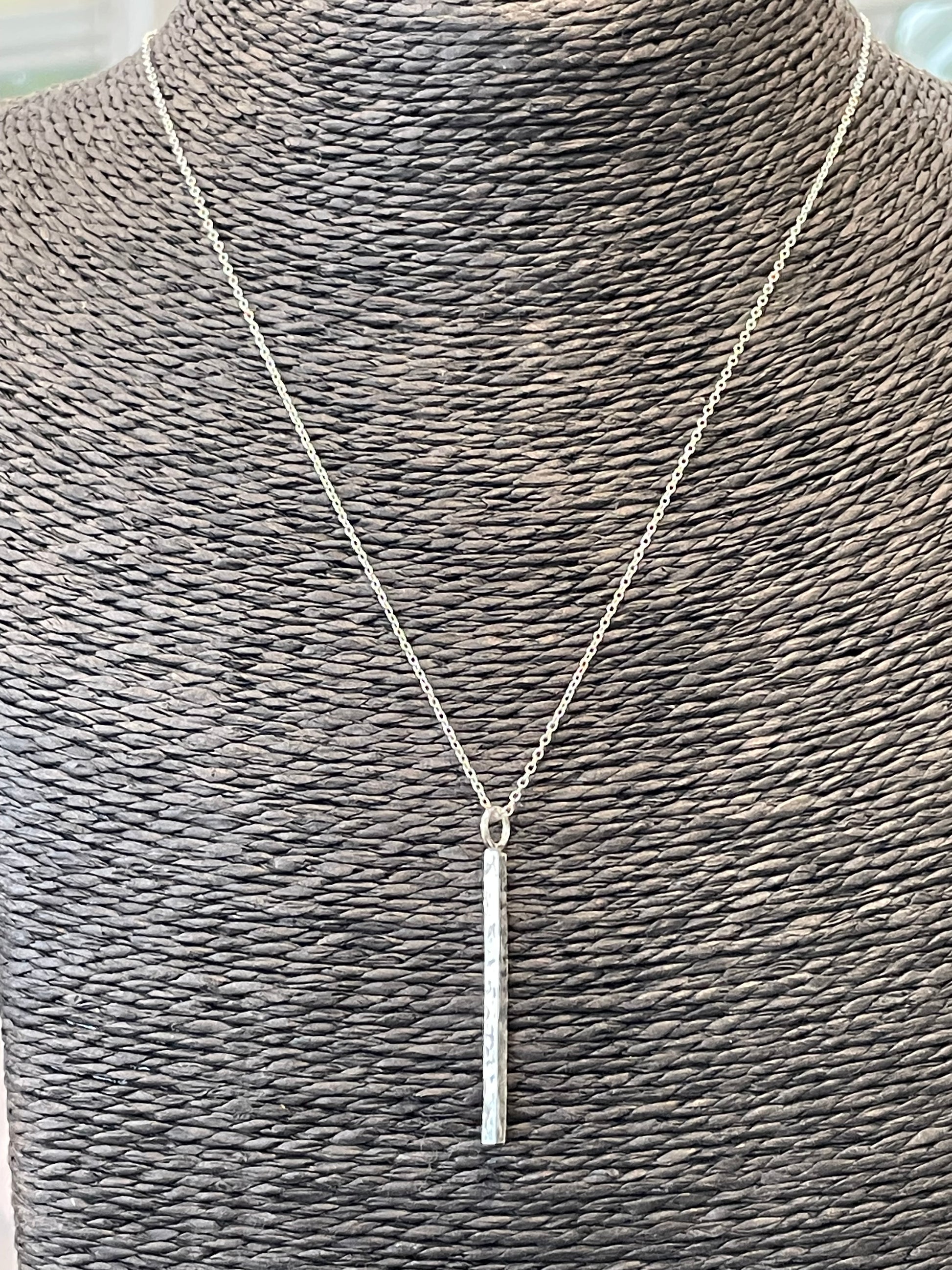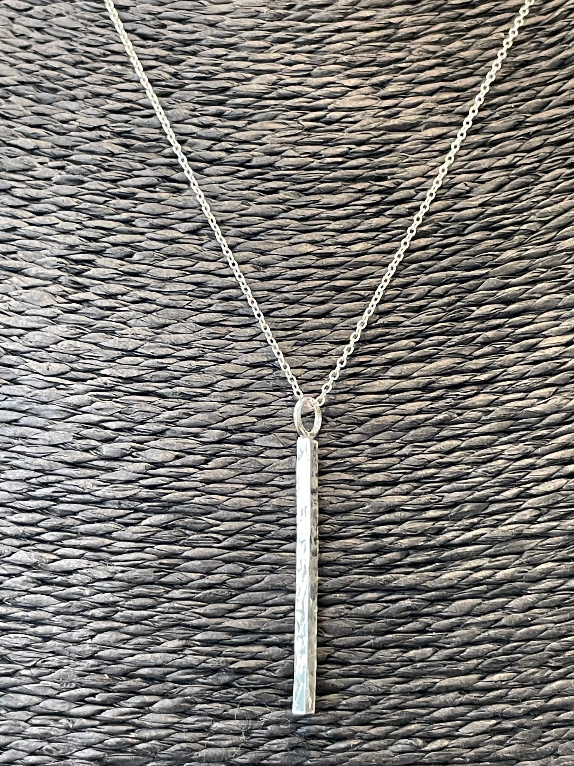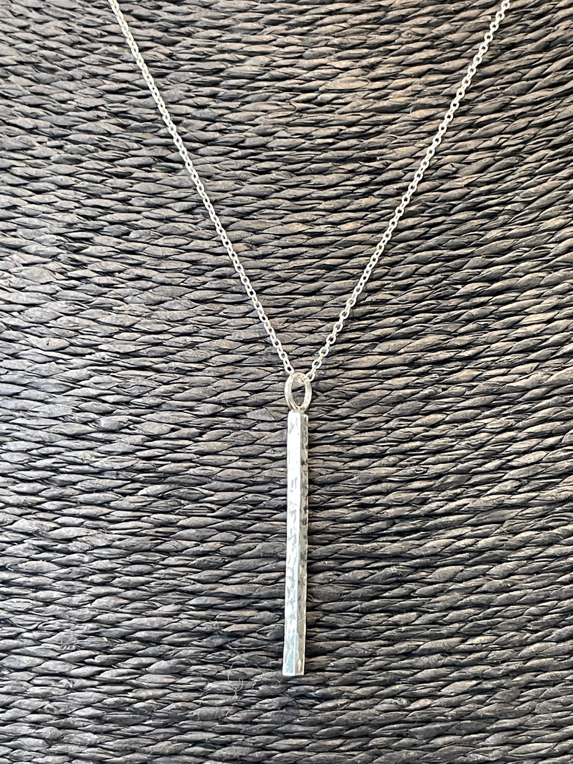 Handmade Sterling Silver Hammered Bar Pendant.