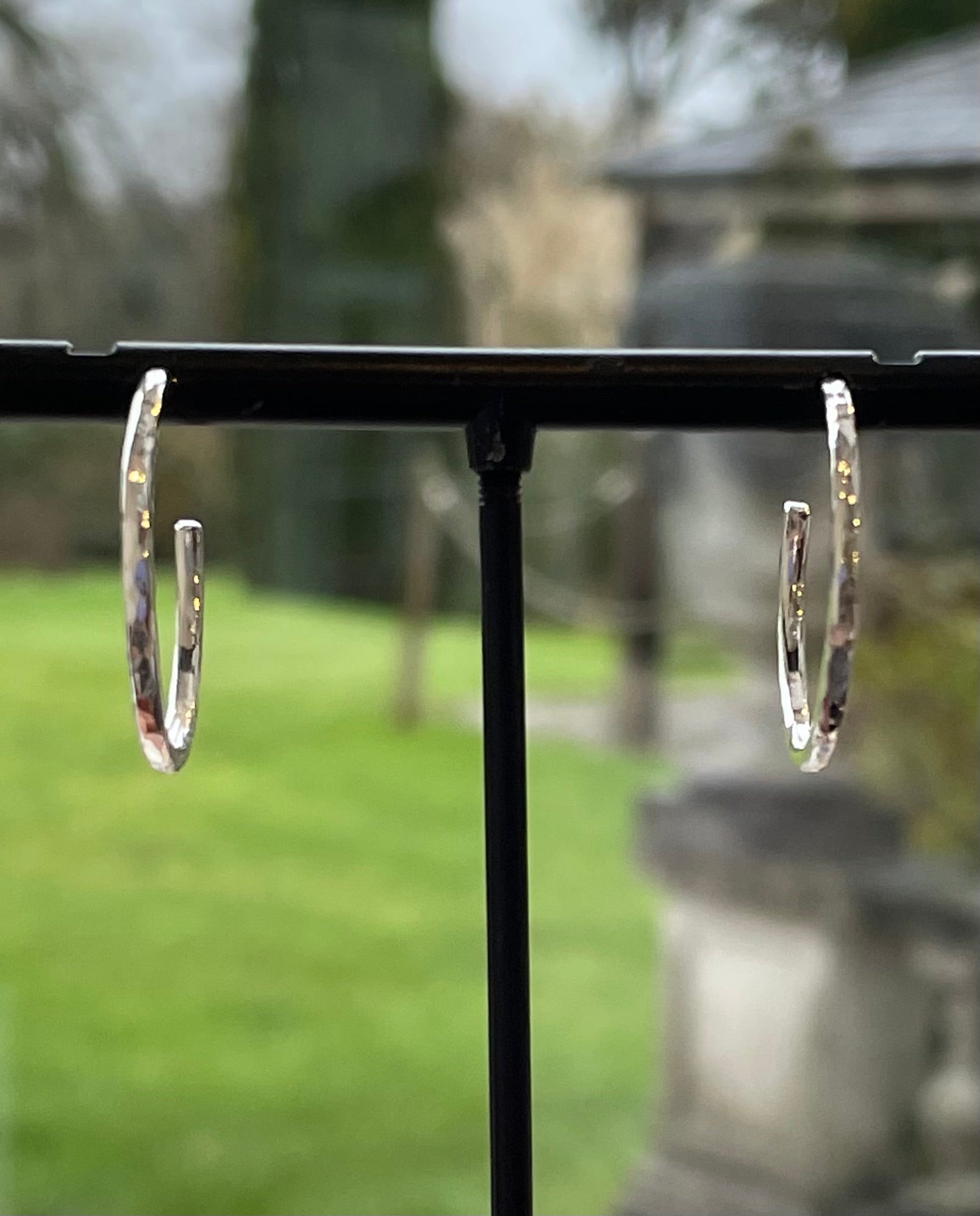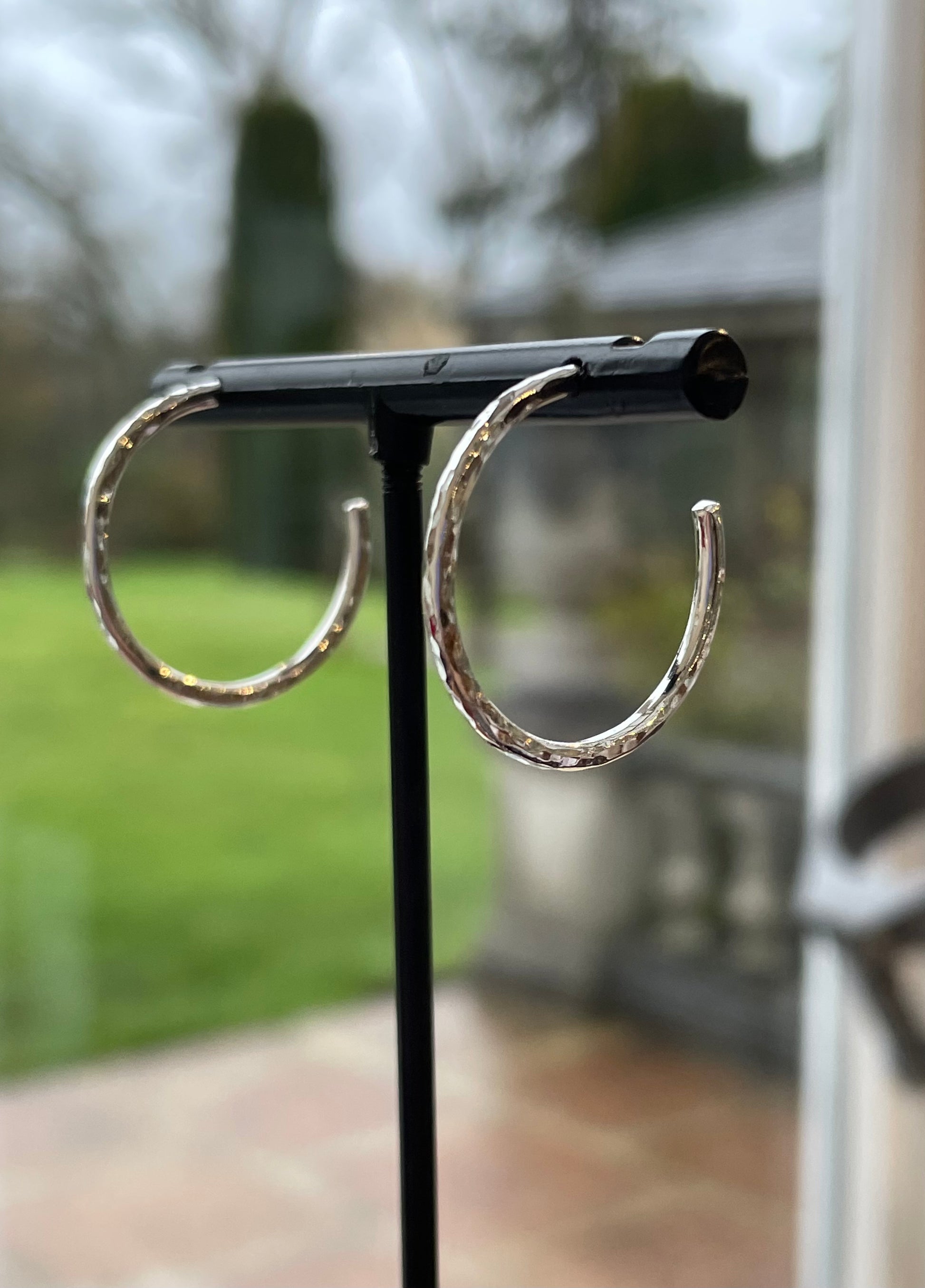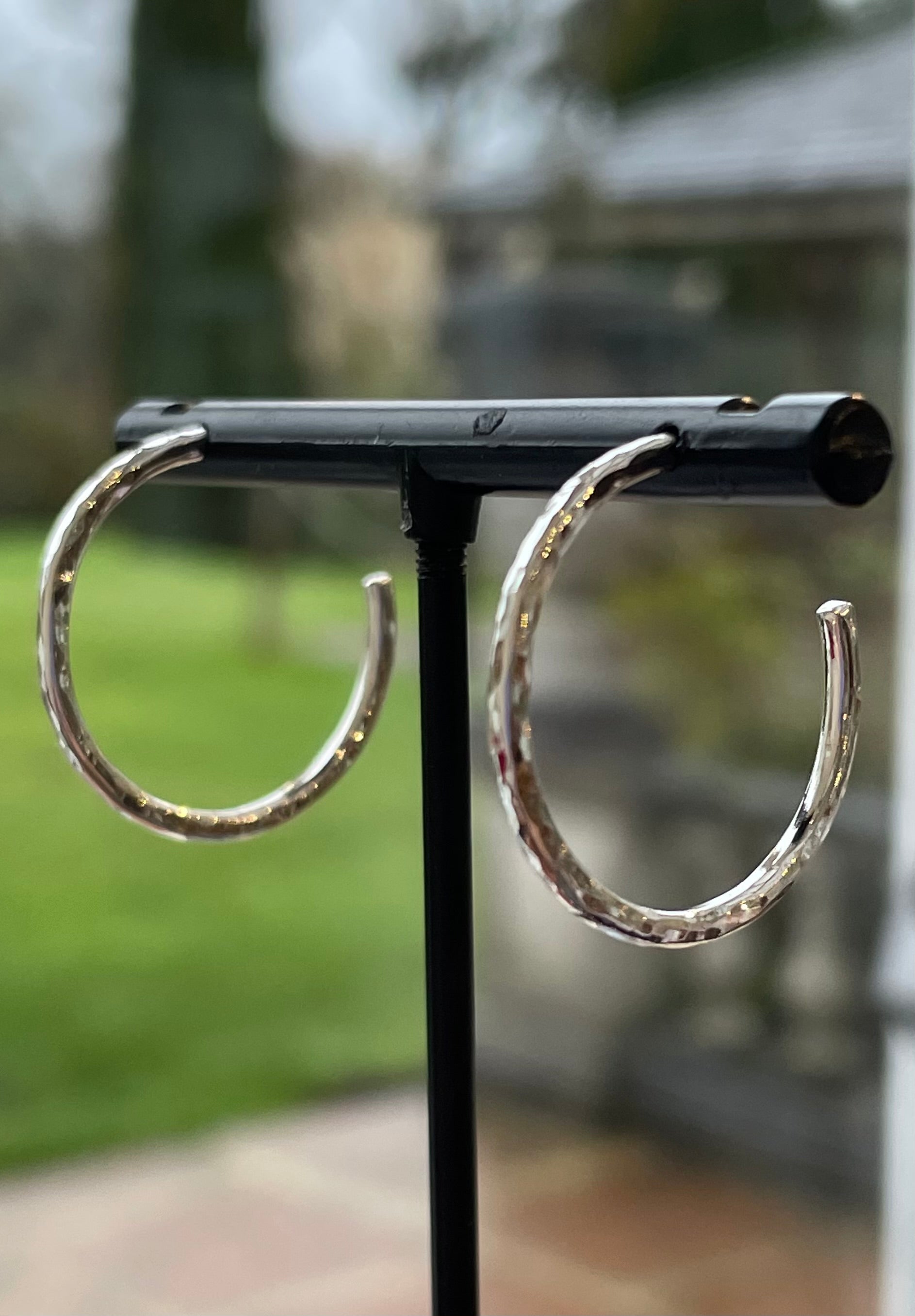 Handmade Sterling Silver Hammered Hoops with a stud fitting.