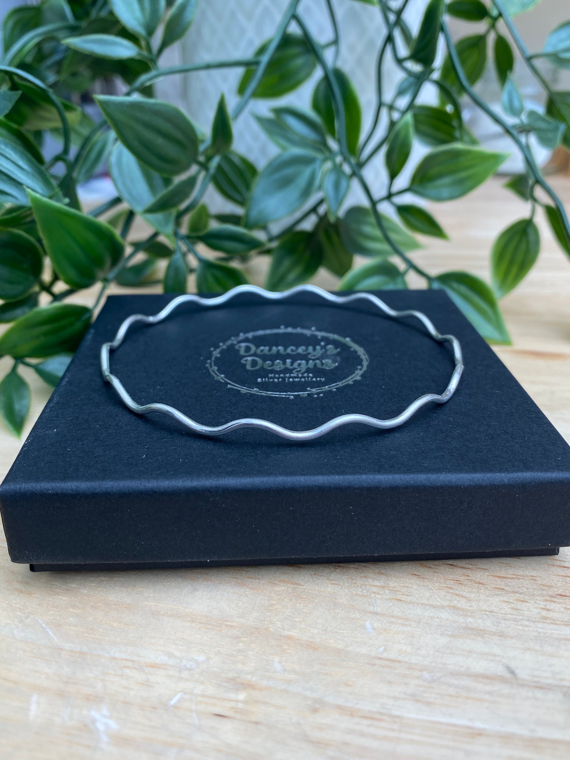 Stunning handmade Wavy bangle made from 1.3mm Sterling Silver